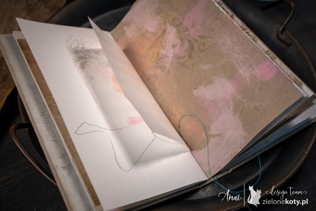 W tym kursie nie ma konkretnego zestawu produktów, ani dokładnych wymiarów co do milimetra. Jest natomiast mnóstwo podpowiedzi i konkretnie pokazane kroki, które Anai wykonała, żeby stworzyć swój Art Journal.
